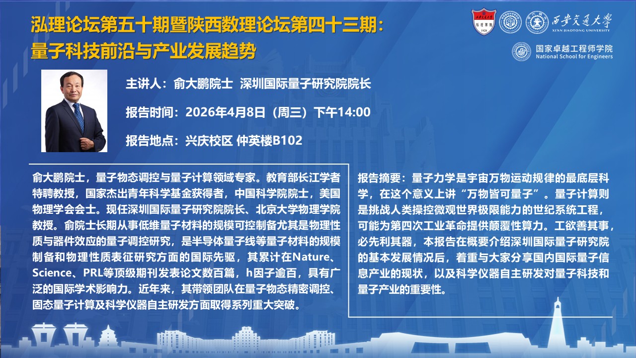 【泓理论坛第五十期暨陕西数理论坛第四十三期】—— 量子科技前沿与产业发展趋势