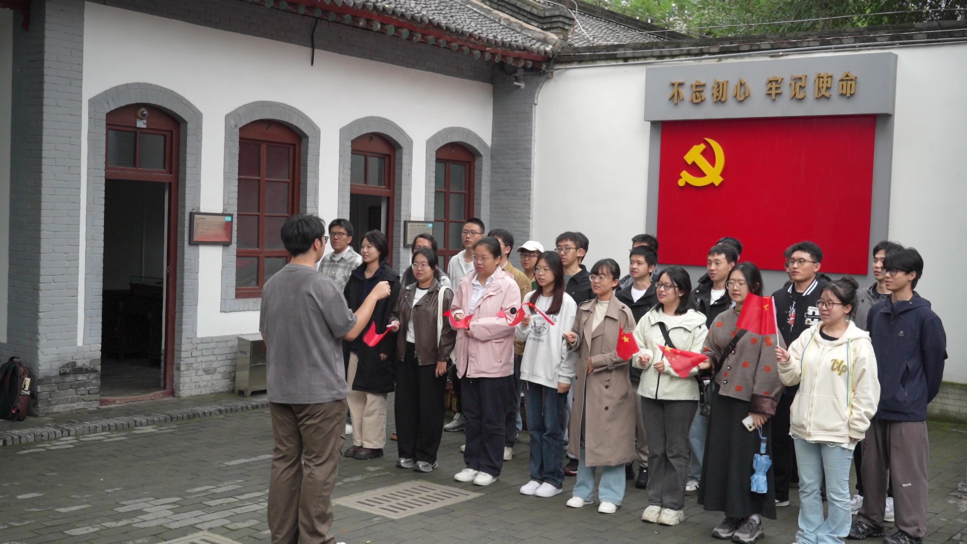 参观接近尾声时,全体成员在庭院整齐列队,手持小国旗,由组织委员种华带领,共同高唱《歌唱祖国》。激昂旋律响起,大家将对祖国和革命历史的敬意融入每一个音符,用歌声传递“铭记历史、珍爱和平、开创未来”的信念。歌唱结束后,大家挥舞小国旗,展现新时代青年昂扬风貌。