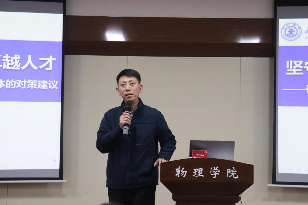 研究生院南文海主任以“择天下英才而育之——研究生招生政策与规模优化”为主题,系统解读国家及学校研究生招生最新政策。他指出,物理学院作为基础学科人才培养核心单位,需精准把握招生节奏。报告中,南主任结合物理学院“优本计划”“国优计划”等特色招生项目,强调要聚焦“源头选优”,在招生环节突出基础学科素养与科研潜力考察,为后续培养筑牢优质生源基础。